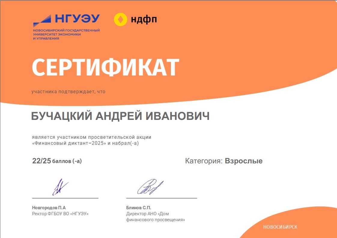 а через смартфон, планшет или другое устройство. Задания включают вопросы в формате тестирования. После прохождения каждый участник получил персональный сертификат с результатом Финансового диктанта.