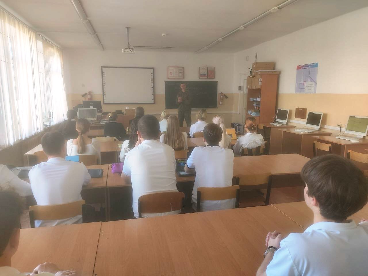 23.10.2025 года на встрече "Урок мужества", организованном специально для старшеклассников, ребята получили уникальную возможность послушать рассказ участника специальной военной операции. Встреча позволила школьникам узнать больше о героизме и патриотизме наших современников, услышать историю настоящего защитника Отечества непосредственно от первого лица. Подобные встречи способствуют воспитанию чувства гордости за страну и уважение к подвигам тех, кто служит Родине, выполняя важные миссии в сложных условиях.