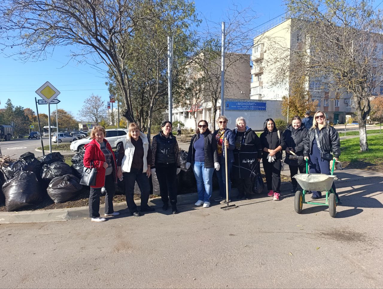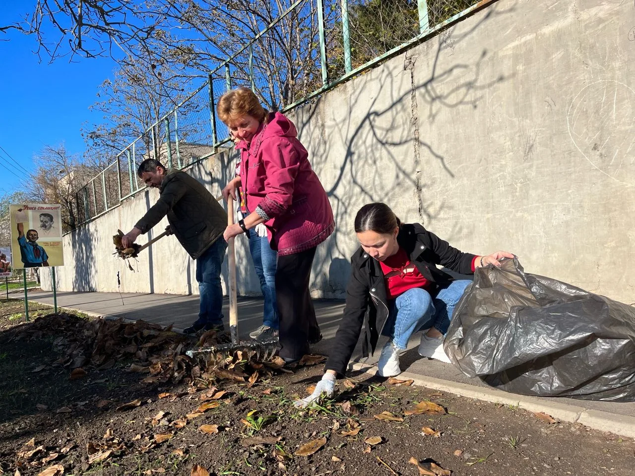 С самого утра воздух наполнился звонкими голосами и шумом работы. Педагоги, сотрудники и даже самые активные ученики с энтузиазмом взялись за дело. Каждый знал свою задачу: кто-то ловко орудовал метлой, собирая опавшие листья, кто-то с усердием проходился граблями, разравнивая землю и убирая мусор.