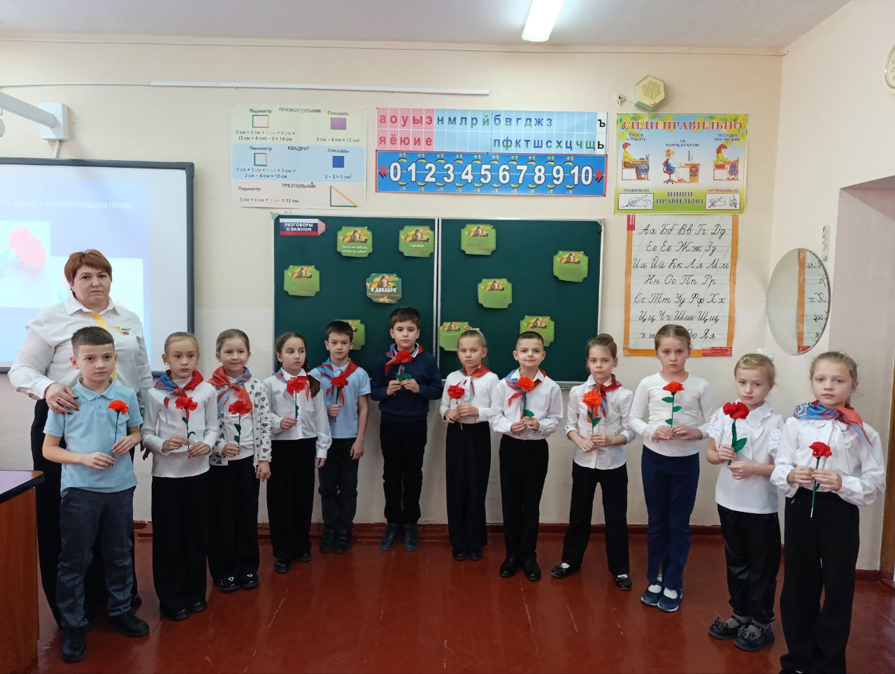 В этот день в МБОУ "Молодежненская школа №2" советник директора по воспитанию Елена Алексеевна Черепанова и ребята 2-А класса организовали значимую акцию под названием «Красная гвоздика».